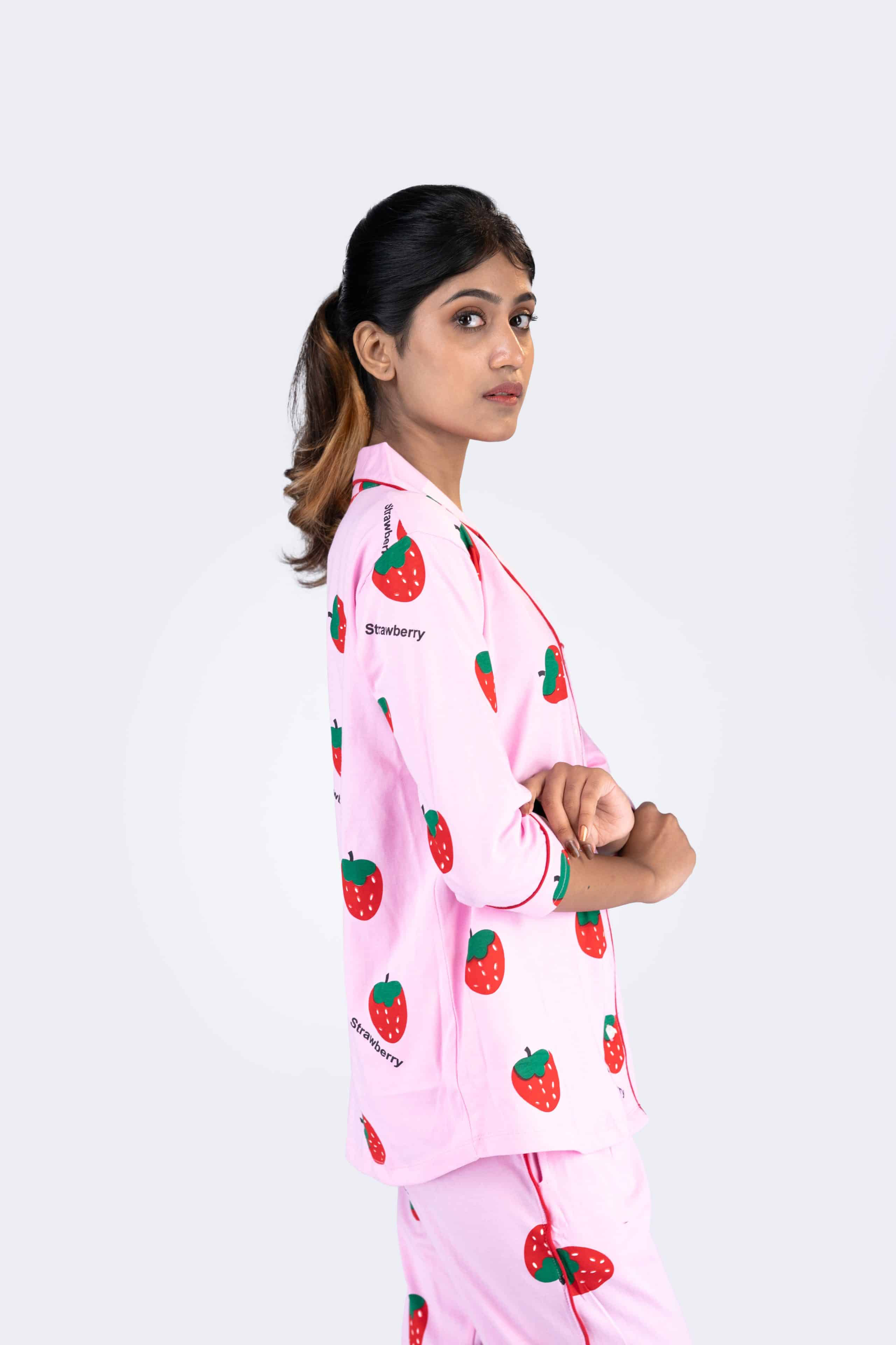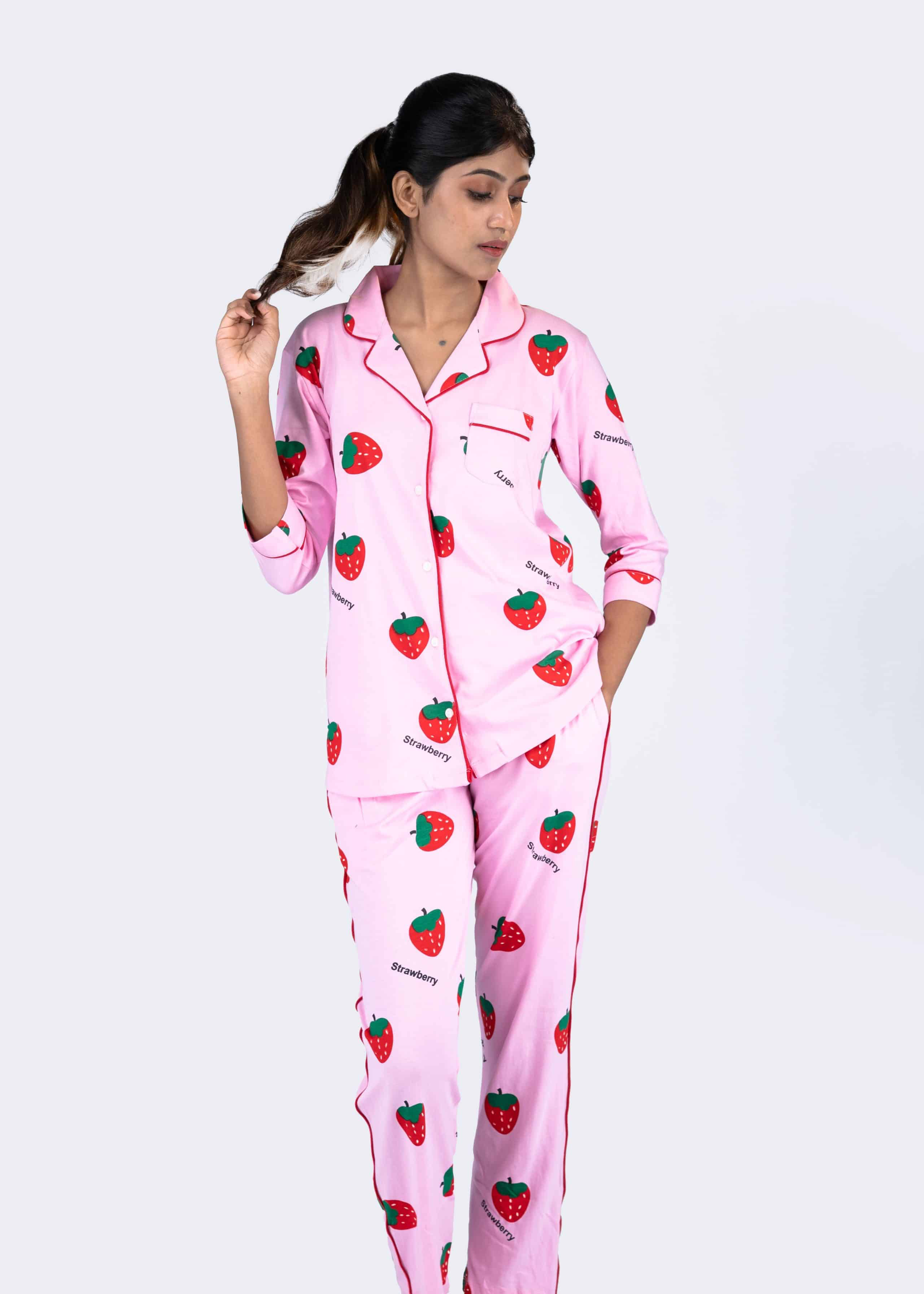 Berry Dream Pink Pyjama Set | Notched Collor | 100% Pure Cotton | Bio-Washed | Manufacture to Consumer Direct sale